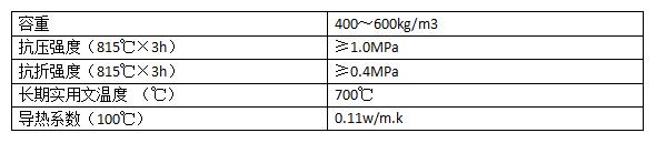 用途:應(yīng)用于工作溫度≤700℃的工作部位保溫層,用于大面積澆灌,如剛性梁、爐頂?shù)忍帯?BR>保溫澆注及絕熱澆注料參數(shù)