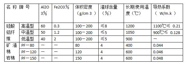 纖維保溫理化性能參數(shù)