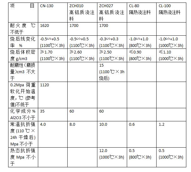干熄焦用澆注料的主要質(zhì)量指標(biāo)