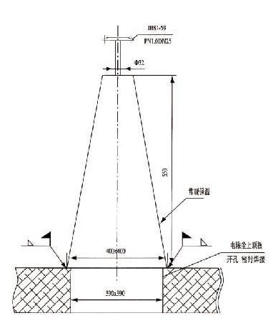 GSK350型聲波清灰器預(yù)埋套管方式安裝示意圖