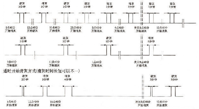 相同間隔、相同清灰時間方式: