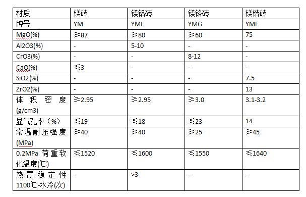 燒結(jié)鎂磚、鎂鋁磚、鎂鉻磚參數(shù)